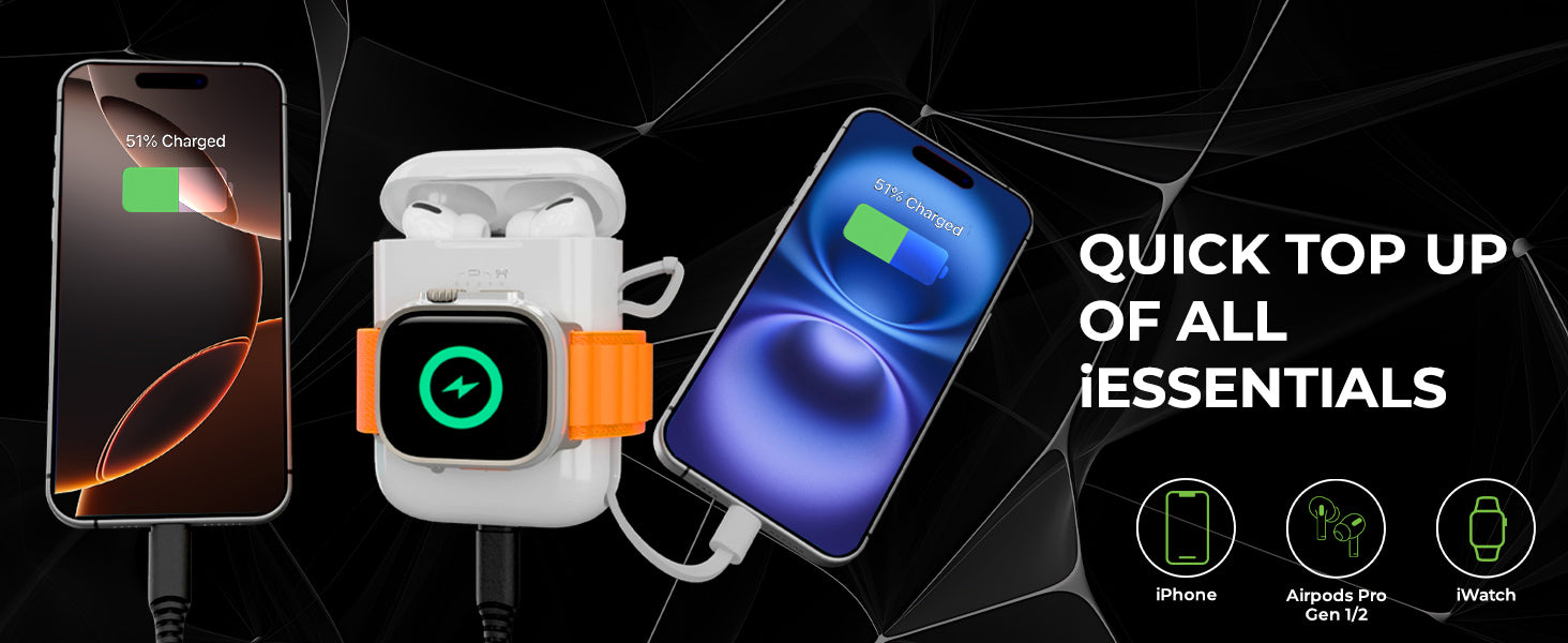 - 4-in-1 Recharge Solution: The UltraProlink Juice-Up QuadPod is a versatile 4-in-1 power bank designed to charge multiple devices, including the AirPods Pro Gen 1&2, iPhone, and iWatch. With a built-in AirPods Pro charging case, it's compatible with AirPods Pro Gen 1 & AirPods Pro 2nd generation, making it a perfect replacement charging case for on-the-go use.