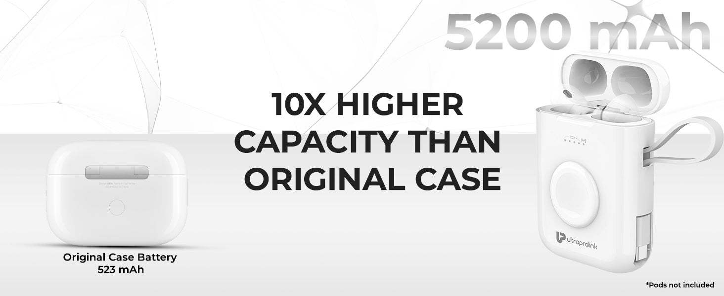Ultra - Pro - Link Quad Pod 4-in-1 Power-Bank for iPhone - Pods Pro Replacement Case with Wireless Sync 5200 mAh-15W