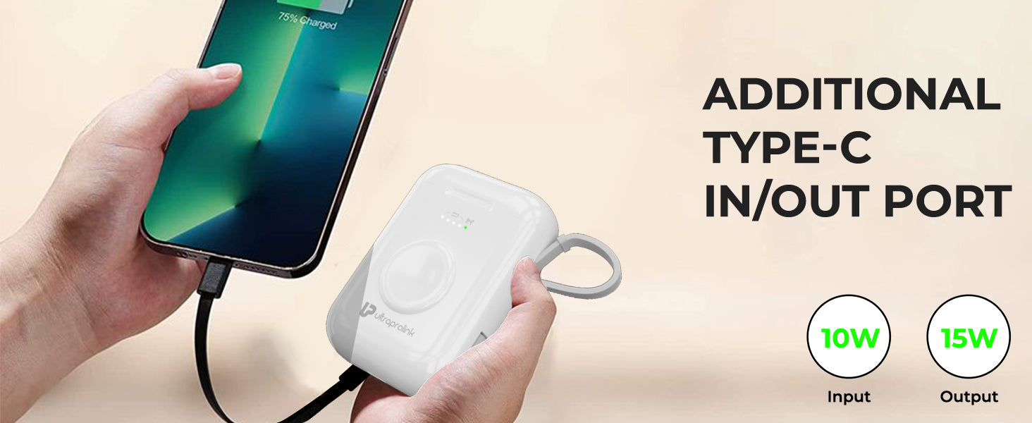 - Pass-Thru Charging Convenience: Charge the power bank & 3 devices simultaneously, including the AirPods Pro Gen1/2, iWatch, iPhone, and other gadgets, thanks to pass-thru charging. The Type-C port also allows for both input (10W) and output (15W), ensuring your power bank is ready when you are.